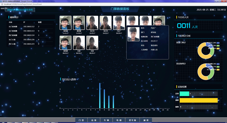實時監(jiān)控出入人員刷卡或人臉識別情況