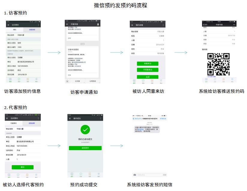 訪客和內(nèi)部員工都可以發(fā)起預(yù)約,并可通過微信或短信收到二維碼